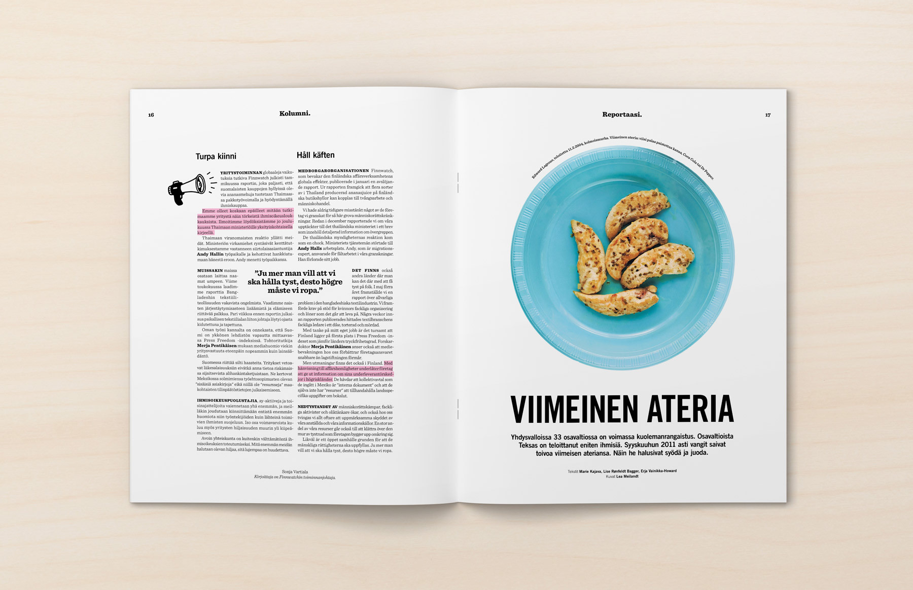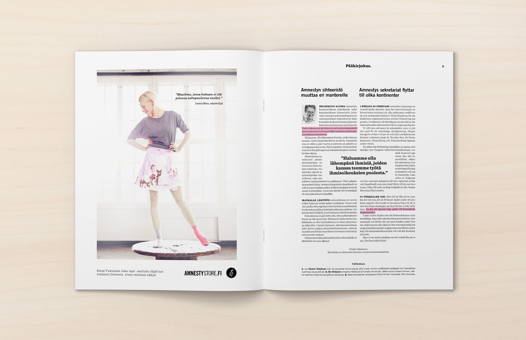 Art direction and a complete redesign for Amnesty International Finnish section's magazine.